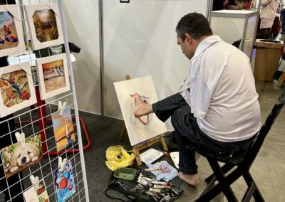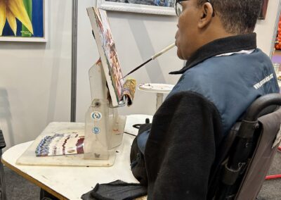 De 05 a 09 de julho, no São Paulo Expo, APBP participou como expositora na feira Mega Artesanal 2025, que é realizada há mais de 15 anos, com a participação da Indústria, do Comércio, dos Ateliês, Confeiteiros e Artesãos. A feira oferece infinitas oportunidades para quem gosta de arte, por isso a APBP Brasil não poderia ficar de fora com seu estande, onde nossos artistas encantaram o público pintando ao vivo com a boca e os pés.