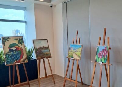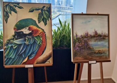 Empresa da indústria farmacêutica, a Takeda fez parceria inédita com a APBP, promovendo uma exposição das telas dos nossos artistas, com direito à uma palestra e demonstração de pintura ao vivo feita pelo artista Daniel Ferreira.