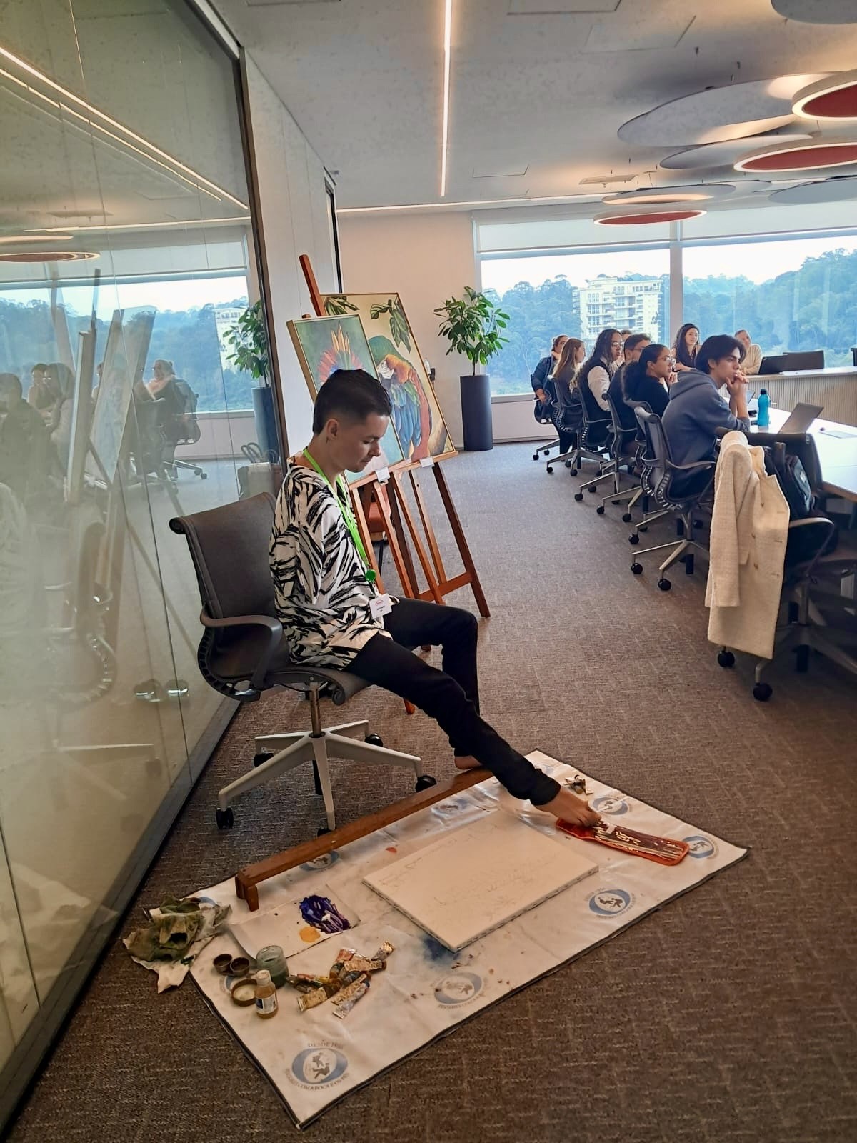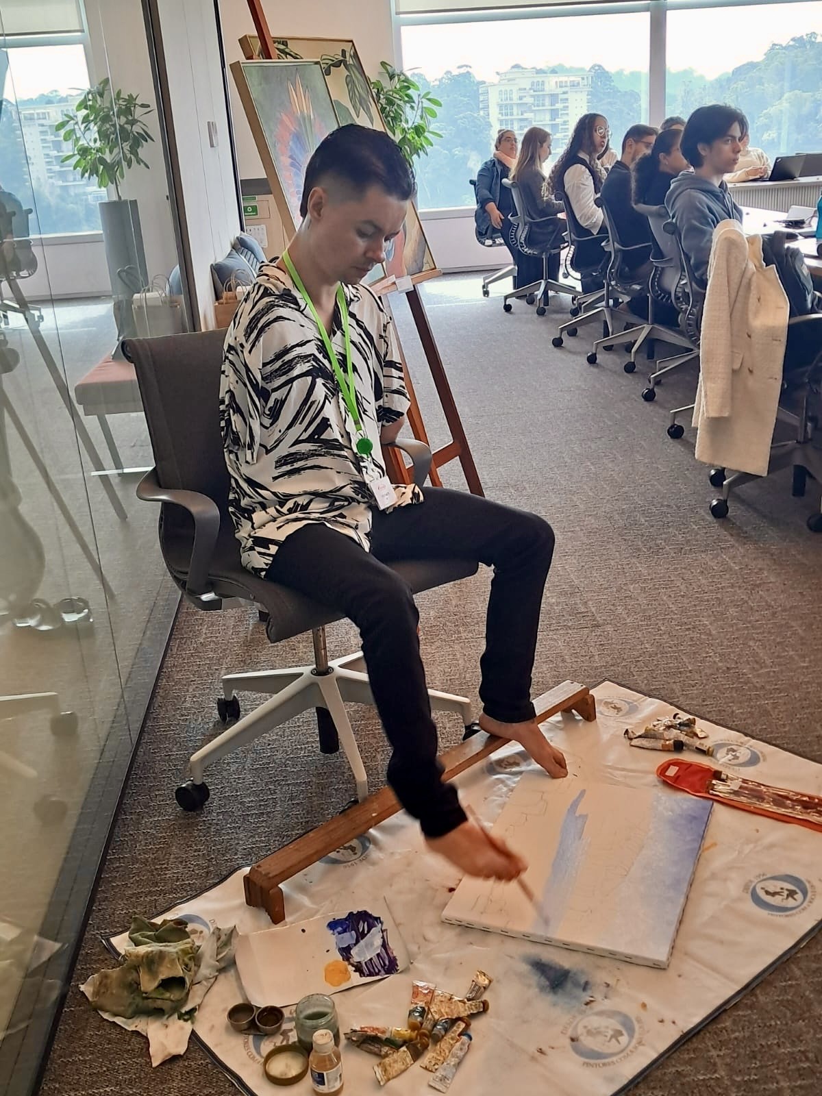EXPOSIÇÃO DE TELAS E DEMONSTRAÇÃO DE PINTURA NA EMPRESA TAKEDA